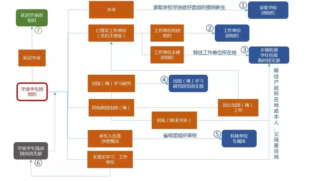 已落实工作单位(含自主创业)的毕业员工团员,可在“北京共青团”系统中标记“工作”。通过团员个人申请或毕业后工作单位团组织添加团员的方式将团组织关系转接至工作单位团组织;工作单位尚未建立团组织的,应转接至工作单位所在地的乡镇街道或县级团组织建立的“学社衔接临时团支部”。注意,中央及国家机关、中央金融、中央企业、全国铁道、全国民航等均属于京外序列,需遵循“京外工作”的团组织转接流程。