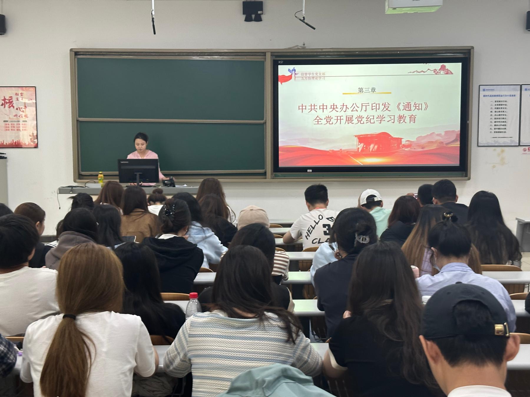 2024年5月24日,信息管理与信息系统员工党支部根据5月党支部理论学习计划安排,在第二教学楼104教室开展了支部书记讲党课活动,信息管理与信息系统员工党支部全体员工党员、发展对象、积极分子线下听会。支部书记常晓宇就党纪学习教育、“物流教育三十年”专题学习等方面做集中领学,支委年圣做专题领学。