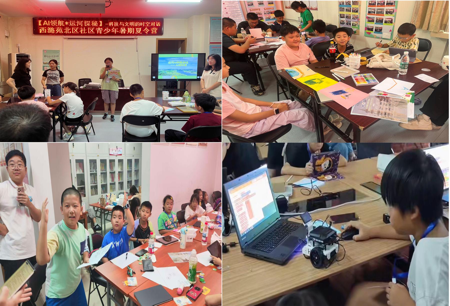 AI探险、沉浸式剧场、运河寻宝游戏、运河知识大富翁、Scratch编程、智能小车、运河航运挑战赛、“当AI遇见运河”创意提案……寓教于乐的授课方式,科技与文化有机结合的课程内容,灵活紧密的课程衔接吸引了各社区中小员工的积极参与。活动全程以员工为中心,让中小员工收获了成长,也让员工党员、积极分子们在策划组织与志愿引导中完成了“理论到实践”的综合能力跨越,践行了“在服务中学习,在实践中成长”的育人理念;同时,活动将AI科技与运河文化结合,以“当AI遇见运河”创意提案探索文化传承新路径,通过沉浸式历史剧场等环节增强了孩子们对传统文化的认同。