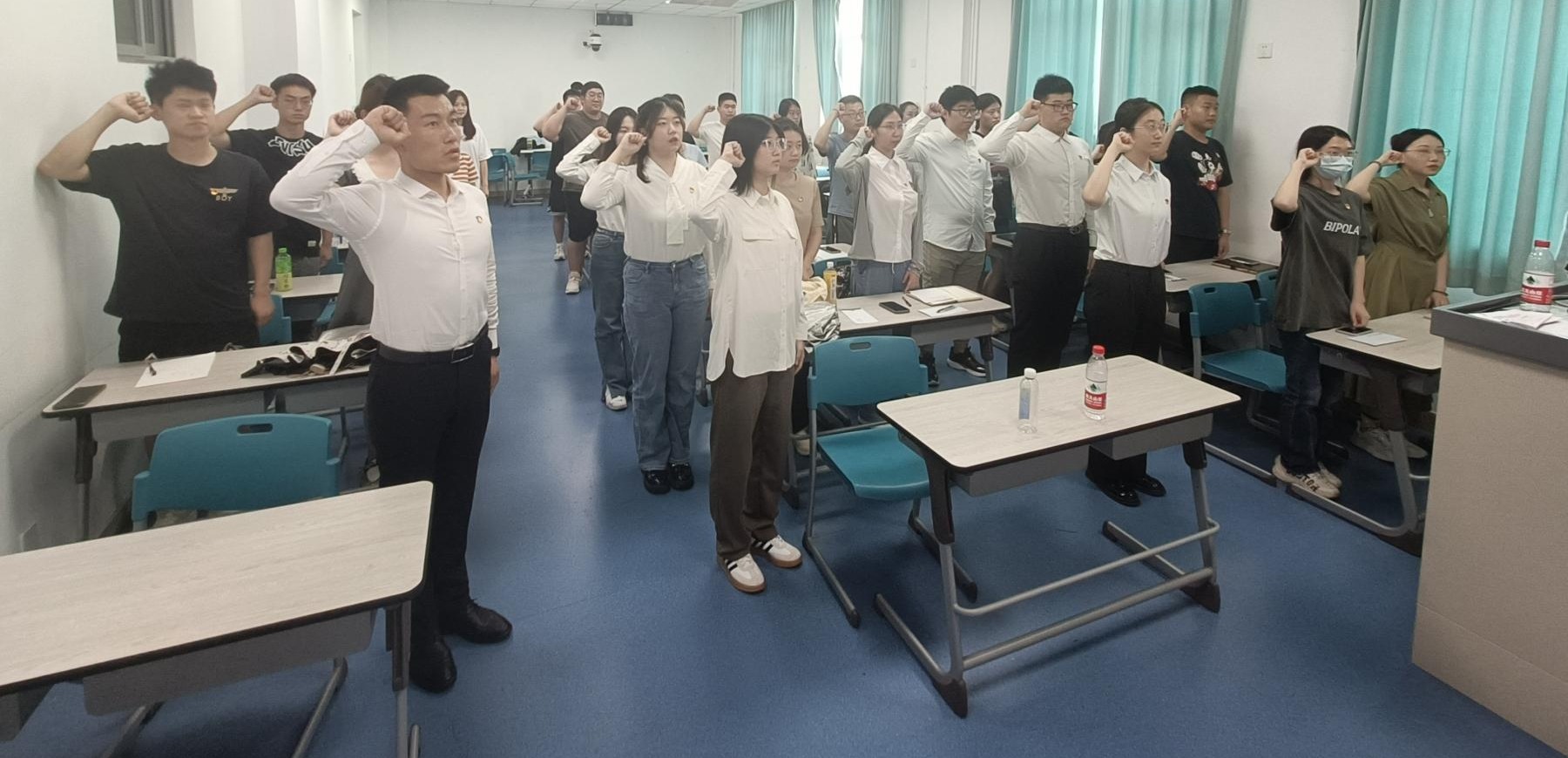 随后,党支部书记孙会彬主持召开支部党员发展大会,严格按照发展党员工作程序讨论和表决接收预备党员事项,并带领新发展党员面向党旗进行入党宣誓。