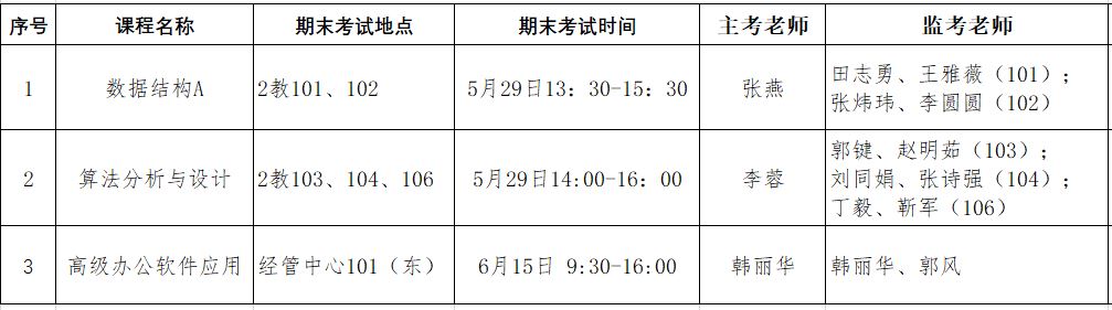 1.《数据结构A》《算法分析与设计》《高级办公软件应用》考试安排: