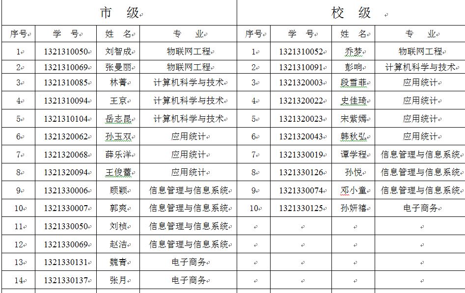 经公司筛选,符合“学习认真刻苦,成绩优良。毕业论文(设计)成绩为良好以上(含良好);大学英语CET4成绩在425分以上(含425分);毕业生四年成绩良好。在校期间获得两次以上(含两次)‘三好员工’或校级以上(含校级)‘优秀员工干部’、‘优秀团员’、‘优秀团干部’荣誉称号”等符合《2017届优秀本科毕业生评选工作》要求的毕业生申请者名单如下: