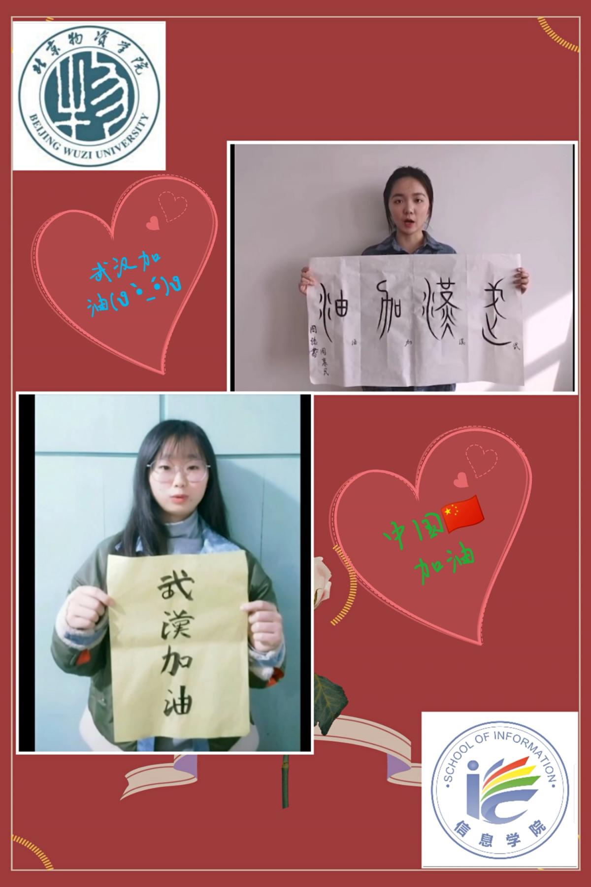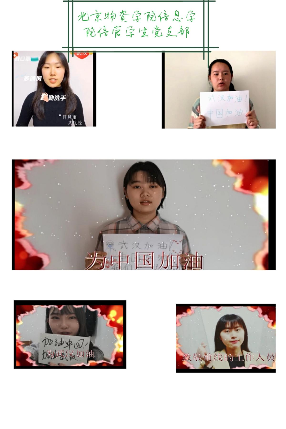 视频中,来自北京、河南、浙江、内蒙古、广西壮族自治区、新疆维吾尔自治区、福建、河北等全国各地的党员同志别出心裁,用自己的方式表达打赢疫情防控的决心。其中,2016级党员陈智璇同志和周惠民同志分别用赵体和篆书手写毛笔字“武汉加油”,为武汉地区加油打气,并且说:“隔离病毒但并不能隔离爱,更不能隔离我们的牵挂”。还有2016级党员李晨阳同志通过一段手语表演《不放弃》,表达自己乌云遮不住太阳,春天终将到来的防控疫情的决心和积极心态。2017级党员张文杰同志更是通过一段顺口溜来表示自我隔离的决心。“只要还有一粒米,不往人多地方挤;只要还有一滴油,待在屋里不露头;只要还有一根葱,不往菜市场里冲;只要还有一口气,待在家里守阵地;我在家,我骄傲,我为祖国省口罩”。最后还有2018级党员王愉伟同志,默默无闻的在幕后为大家剪辑视频,通过自己的特长,用自己擅长的领域将信管员工党支部党员的抗疫决心传向祖国各地。