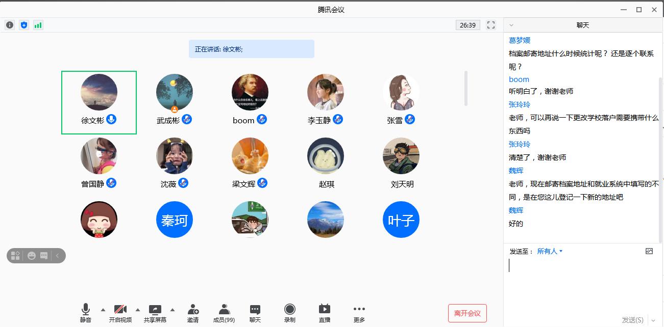 会上,徐文彬老师首先为2020届毕业研究生解读了研究生院的离校安排,从学宿费的清缴到毕业生的公费医疗报销,再到离校当天公司毕业典礼、双证领取、毕业纪念品发放等事宜进行详细讲解。并针对性开展了就业教育,帮助广大毕业生树立先就业再择业的就业观念。