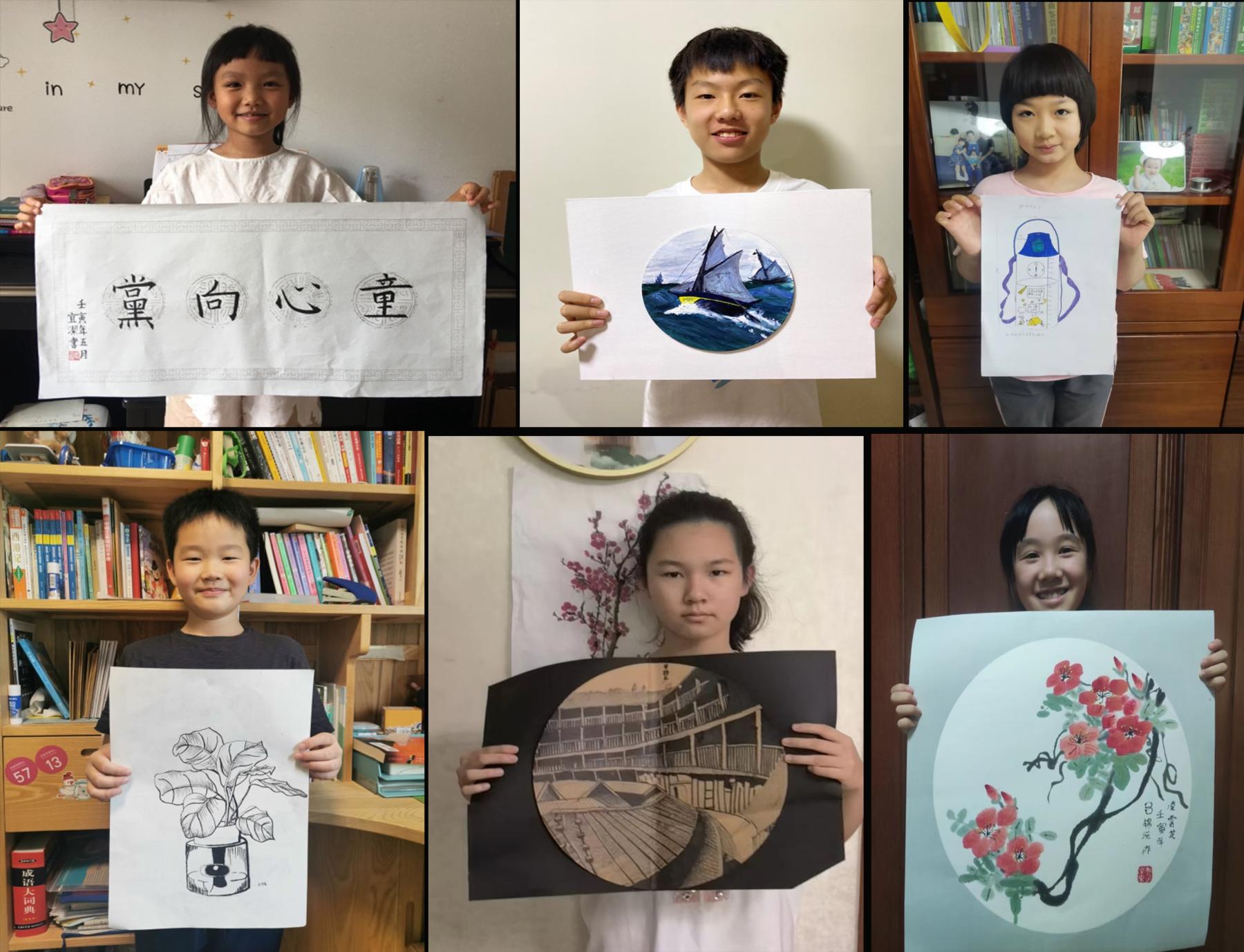 孩子们的绘画内容丰富多彩、画风多样,在一张张作品中,小朋友们用稚嫩的画笔,以酣畅的线条,绚丽的色彩,绘出对美好未来的憧憬和追求,尽情抒发新时代少年儿童爱党、爱国、爱生活的情怀。