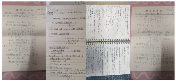 近日,我们将高等代数的第七章线性代数部分学完,并复习了高等代数的第六章,这部分的学习是为了以后的高代学习打下良好的学习基础。我们还参加了高等代数的期中考试,我们组都复习的不错,其中,我们在学复习的过程中发现了向量空间的重要作用,在我们所学的各类知识,均离不开向量作为引线连接各个条件之间的关系。通过合作学习,我感受到:不一样的学习方式可以带给我们不同的快乐,不同的启发。以前,总是老师把他们宝贵的知识教授给我们,现在需要我们自己开动脑筋去创造,我们分组,通过互动,表达自己的看法,再进行归纳、总结,最终形成问题的答案。在近日的学习中,小组成员均已掌握基本知识并能熟练其中的运算法则,解题目时能做到独立思考,取得进步。除课堂的基础学习之外,我们小组按时完成了小组任务即自愿延长晚自习时长完成当天高代笔记及课后作业和问题讨论,每位小组成员均守时守纪,互帮互助,做到查缺补漏,今日事今日毕。成绩优异的成员热情的为其他成员解疑答惑,学习热情高涨。老员工,讲的就是个自学的能力,独立探求知识的能力。在条件完全相同的情况下,我们同学所取得的学习成绩是不同的,这有多方面的原因,但其中自学能力不同是一个重要原因。成绩优秀的同学往往具有较强的自学能力,他们不仅仅满足在老师指导下的学习,更注重独立探求知识,注重对书本的自学理解,遇到问题,并不急于求教,而是首先通过独立思考来解决,他们总是根据自己的实际情况来安排学习,表现出较强的独立性和自主性。我在这方面并不是做的很好,但一直努力争取做到百分之百的独立自主学习思考。以上图片为部分成员的高代笔记及小组讨论题时的记录)