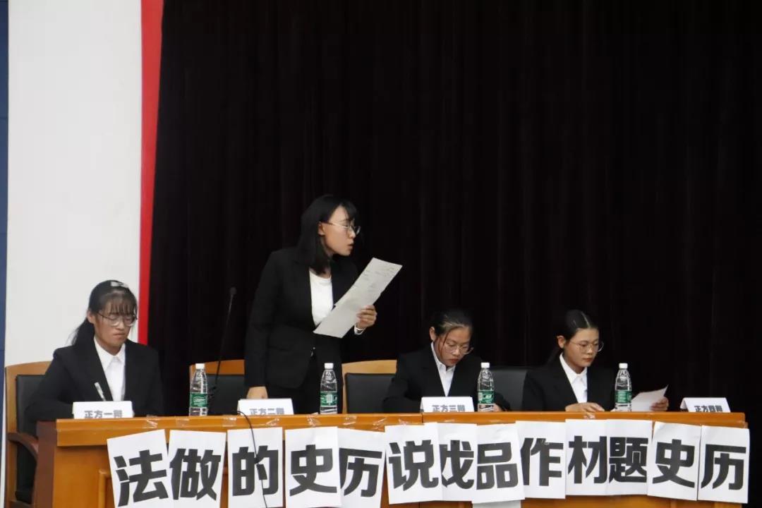 最后是大数据一班和电子商务班,他们的辩题是“历史题材作品戏说历史利大于弊/弊大于利”,电子商务班最终获得了本场比赛的胜利。