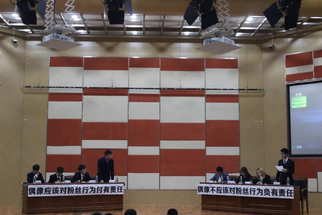 由计算机实验班和统计一班带来的辩题为“偶像应不应该对粉丝的行为负有责任”的比赛更加精彩。计算机实验班表现极佳,赢下比赛。