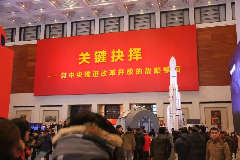 早上七点半,同学们在知新楼前集合,一同驱车前往国博。经过安检,同学们进入了国博馆内进行参观。馆内分伟大的变革、壮美篇章、关键抉择、历史巨变、大国气象、面向未来六个展区全面展示了改革开放以来中国的伟大变革与成就。