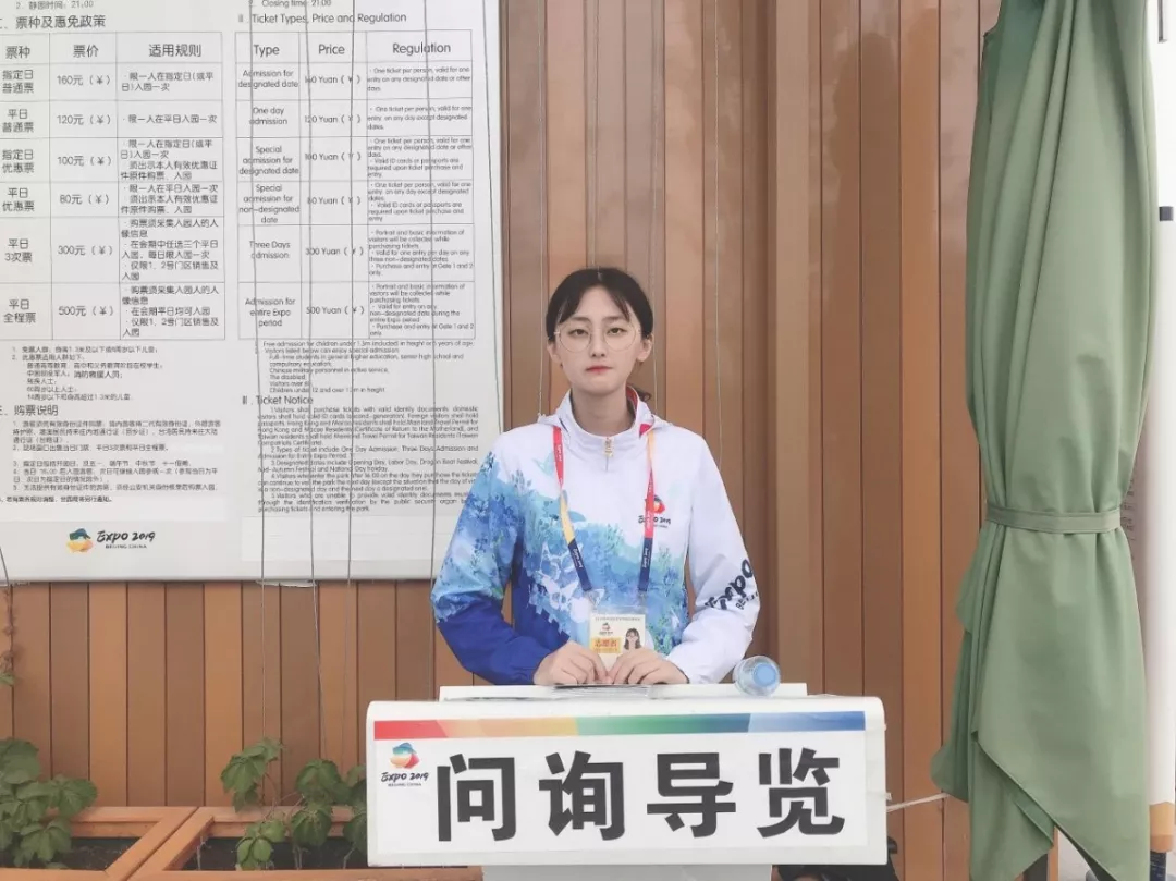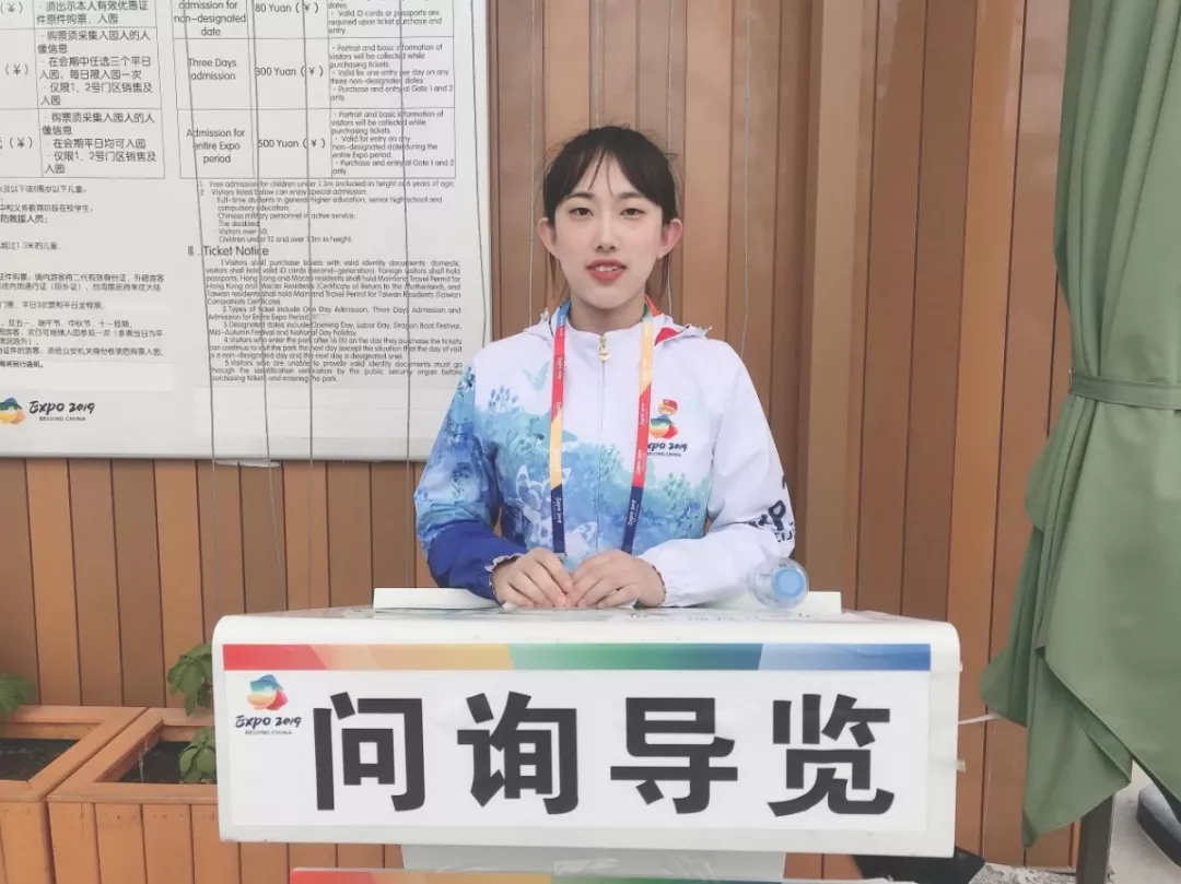 我很荣幸能够成为一名北京世园会的志愿者。与来自世界各地的爱好者们一起携手把绿色发展理念传至世界的各个角落。弘扬与时俱进的志愿精神,展示开拓创新的青春风采。