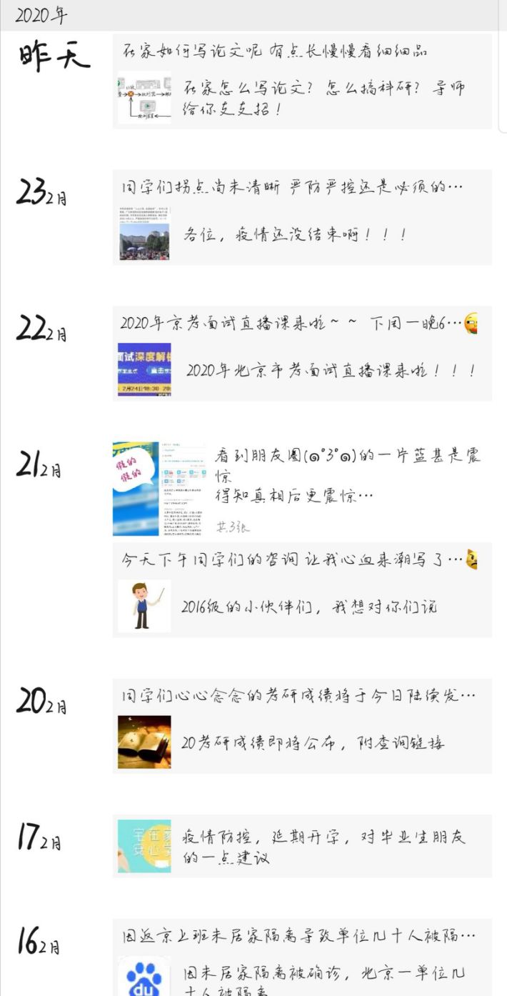 同时,作为毕业年级辅导员,他积极联系组织线上春招,发布相关招聘信息。并在北物信息墙分享自己考研经历给想考研出国的员工以作参考。
