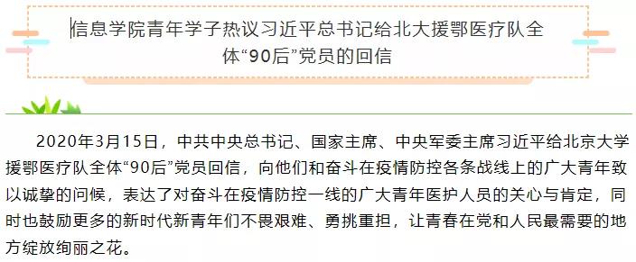 bevictor伟德青年学子热议习近平总书记给北大援鄂医疗队全体“90后”党员的回信