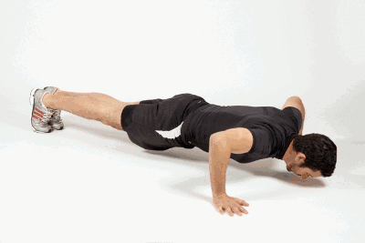 1、标准俯卧撑,手脚触地,双手间距略比肩宽,手指尖向前,以前脚掌(或脚尖)为支点,弯曲肘部;