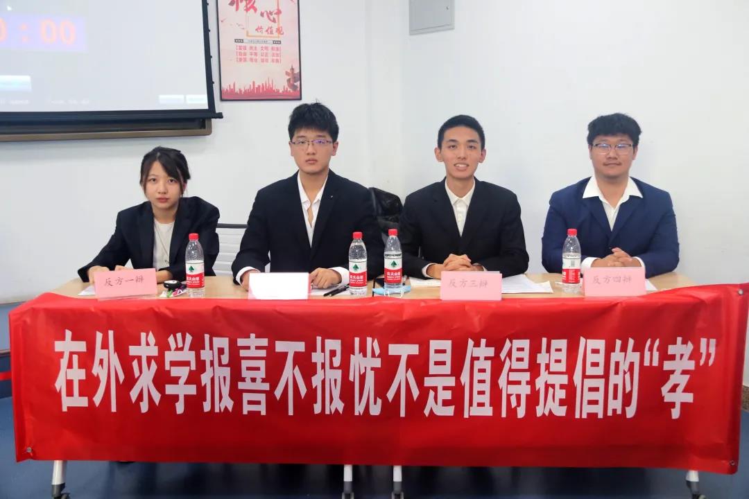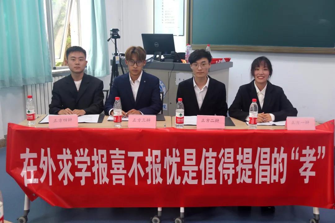 第二场双方分别是,正方数科一班,反方数科二班。双方对在外求学,报喜不报忧是不是值得提倡的"孝"不断提出自己的观点,正方提出“为避免父母与孩子间隔阂加深”应该报喜不报忧。反方则提出“报喜报忧可以拉近父母与儿女的关系”的观点,双方进行了强有力的辩论。获得最佳辩手的是数科一班夏瑞笛同学。