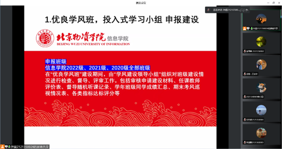 参与答辩的各班都做了充分的准备,并从班级学习效果、学风建设特色、问题及解决方法几个方面,阐述了各班上学年的整体学习情况。
