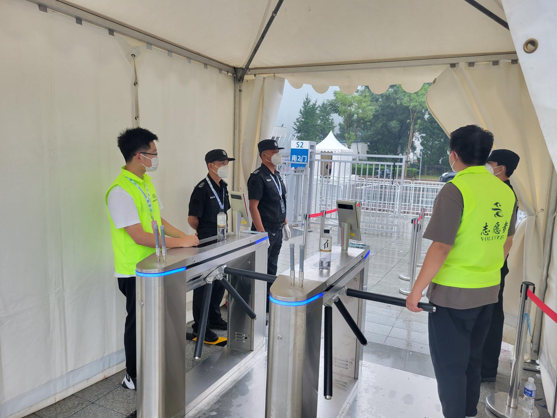安检&园区指引:在园区的西侧和南侧的所有可通行的入口,均安排了志愿者,负责查验人员是否购买了门票、核酸情况和健康宝是否正常等,为园区的安全提供了硬性的保障。进入园区后也安排了负责园区指引的同学,为游客以及参会人员提供路线指引和帮助。