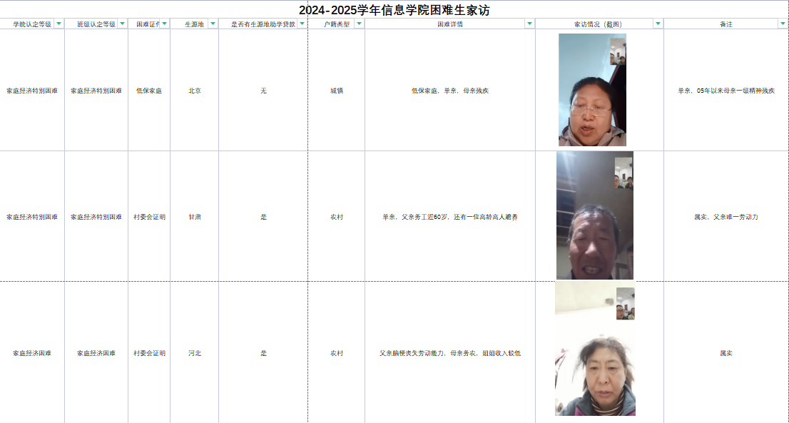 为深入了解家庭经济困难员工的实际情况,精准掌握家庭经济困难员工的切实需求,有效凝聚家校教育合力,将资助育人工作做深做实,bevictor伟德于2024年11月开展云家访工作。公司专业辅导员、班主任借助网络平台对本年度认定的家庭经济困难员工进行全覆盖家访。
