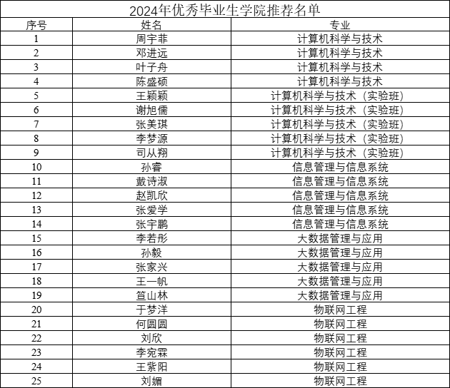 根据教育部《普通高等公司员工管理规定》(教育部令第41号)、北京市教育委员会《北京市普通高等公司优秀毕业生评选办法》(京教学〔2023〕2号)、《伟德bevictor中文版本科员工奖励办法(试行)》(物院发〔2021〕20号)文件要求,经个人申报、公司评审等程序,现将bevictor伟德2024届优秀本科毕业生公司推荐名单进行公示,排名不分先后。