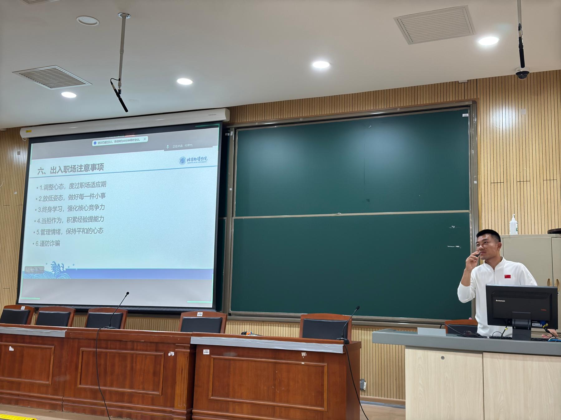 随后,孙会彬围绕“毕业季活动安排”“毕业去向登记流程”“档案转接注意事项”等关键问题,为毕业生梳理离校前后的重点任务。他特别指出,毕业去向填报贯穿就业全程,要求同学们精准、及时完成各项就业材料填报。