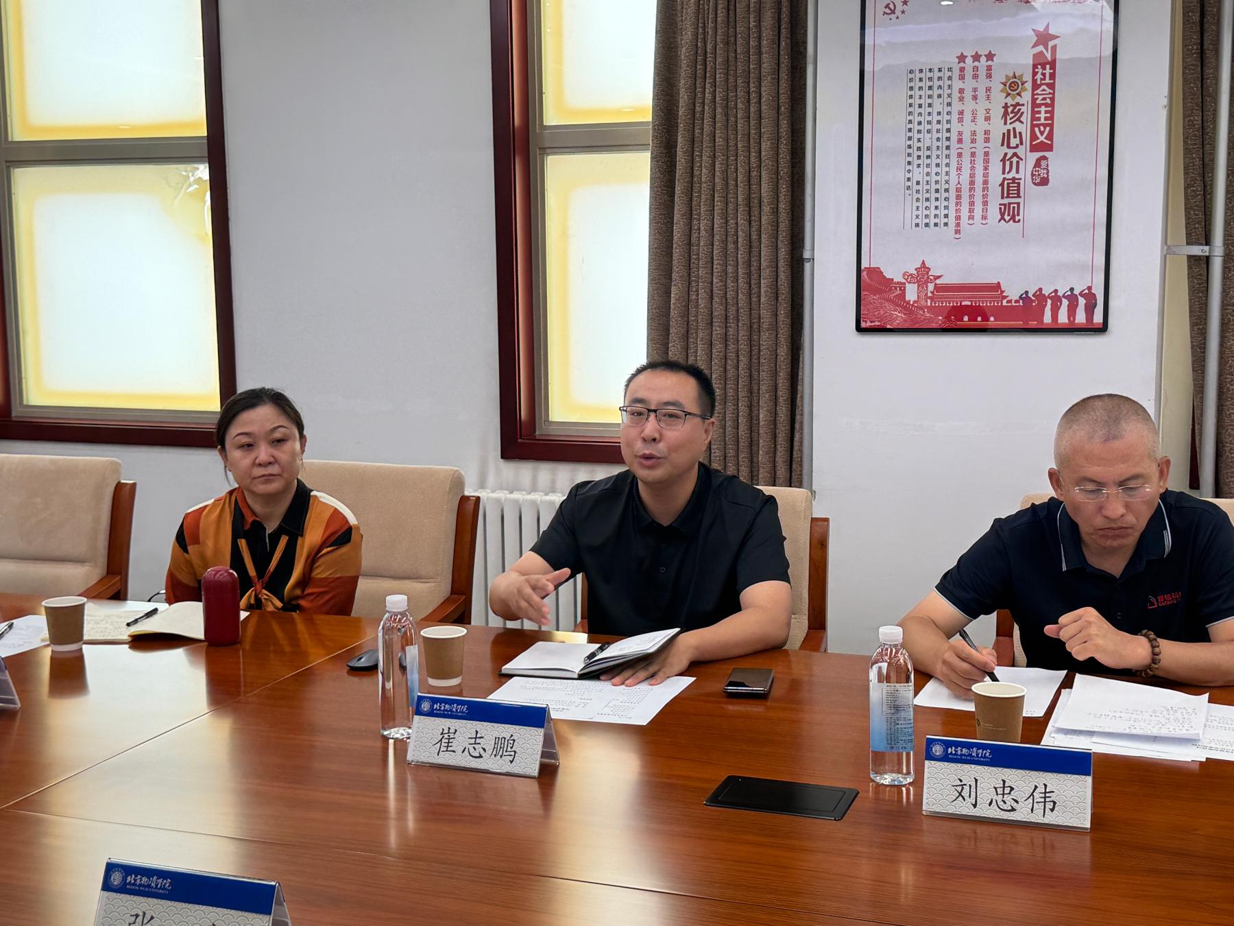 6 月 12 日上午,首都信息科技发展有限公司总经理崔志鹏,副总经理刘忠伟、马旭慧,高级信创咨询规划工程师张冬雪、人力资源部经理胡悦超一行来访伟德bevictor中文版。北京物资公司党委常委、副经理张闯,科研处处长郭茜、bevictor伟德党委书记陈蕾、教务处副处长芮嘉明,bevictor伟德党委副书记武成彬、副经理宋燕星及系主任赵东杰、副主任李圆圆等热情接待,双方在崇德楼202会议室围绕校企合作意向展开深入交流。交流会由陈蕾主持。