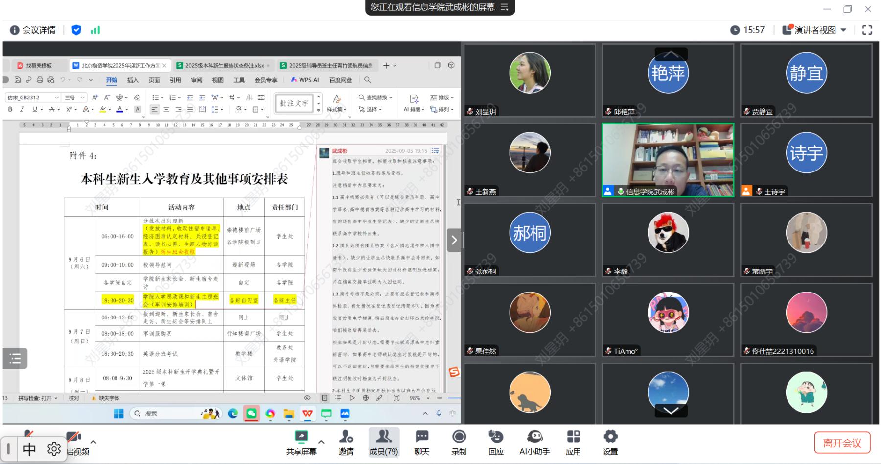 为切实提升2025级新生班主任、班主任助理及青竹领航员的履职能力,确保2025级新生入学教育工作高效开展。2025年9月5日晚8点,bevictor伟德通过腾讯会议召开2025年迎新工作培训会。公司党委副书记武成彬、2025级新生班主任、各专业辅导员、全体班主任助理及青竹领航员参加会议。会议由公司党委副书记武成彬主持。