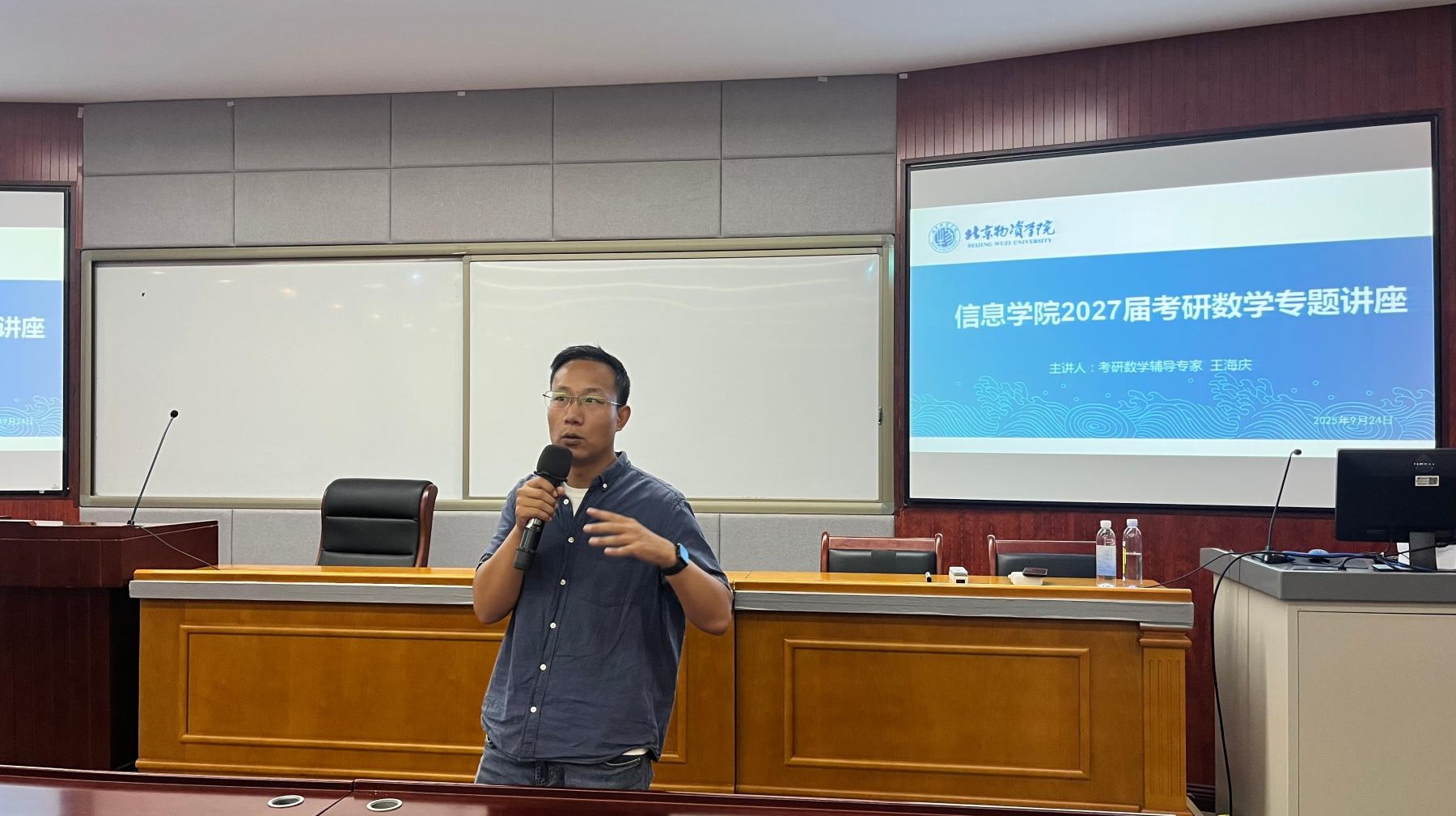 为落实本科 “学涯贯通一体化” 分类培养理念,有效提升毕业生深造率, 9月24日晚,bevictor伟德在知新楼第二教室面向2027届考研员工举办“考研数学专项指导讲座”。讲座特邀著名考研数学辅导专家王海庆担任主讲,辅导员孙会彬主持讲座。