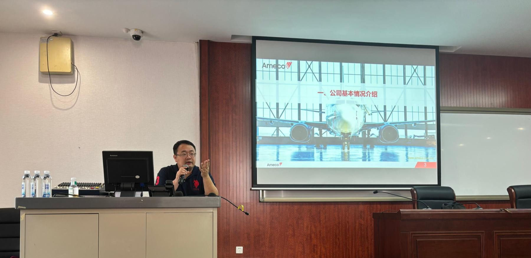 会上,Ameco 招聘负责人系统介绍了企业发展历程、组织架构与业务布局,强调作为民航维修领域重要企业,Ameco 秉持 “安全、质量、效率、价值” 核心理念,始终致力于推进智慧运维、数字化转型与国际化合作。