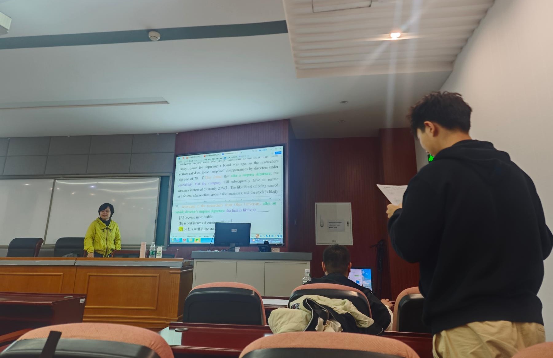 互动环节中,同学们积极提问,吕思亦耐心解答。整场讲座内容详实、逻辑清晰,为员工指明了英语备考方向。