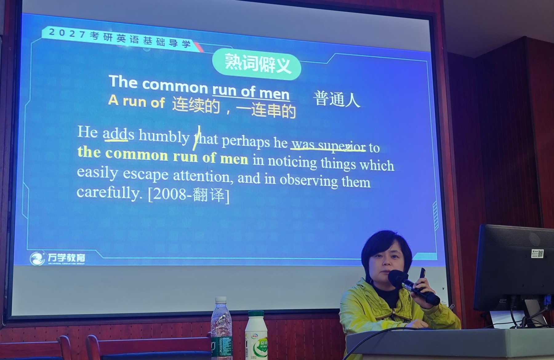 讲座聚焦考研英语复习策略与备考技巧。吕思亦首先分析近年考研形势及英语学科重要性,强调工科员工提早开展系统性规划的必要性;随后从备考阶段划分、核心题型解析、复习资源利用三方面展开细致讲解。在备考规划上,她建议将复习周期分为基础夯实、强化提高、冲刺模考三个阶段;针对题型,她结合历年真题,重点讲解阅读理解长难句拆分技巧、写作逻辑构建与语言提升策略,提供了可操作的解题方法。