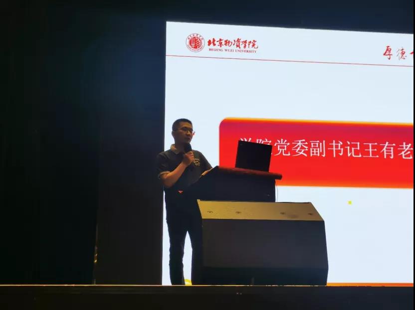 王有老师首先致辞对全体21级新同学表示欢迎,面对崭新的老员工活,他希望同学们要学会学习、学会自立、学会包容、学会规划、学会利用资源。并嘱咐同学们要为自己负责,从上好每一堂课做起,为未来不同的选择做好准备,全身心地投入到老员工活中,争取在大学里都能学有所成。