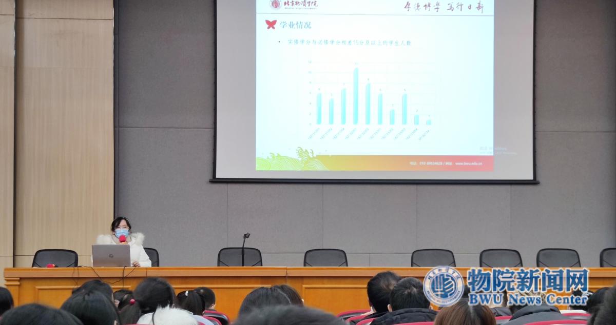 接着,2018级辅导员丁悦老师总结近期就业工作安排,着重强调了学业情况、毕业生就业推荐表、毕业生登记表等毕业就业相关事宜。丁悦老师希望同学们认真完成培养计划规定学分,确保在毕业之际顺利申请毕业证和学位证,为就业和高质量就业奠定学业基础。同时要切实转变自己的就业观念,作为“准毕业生”要对外部求职环境有更为全面和准确的探索认知,结合自身实际情况进行准确定位,提高自身主观能动性,积极应对毕业挑战。