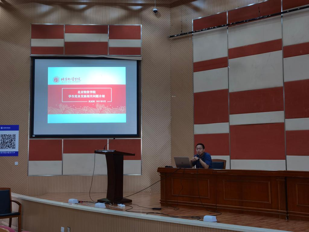 首先,由2019级辅导员武成彬老师为新生们介绍员工党员发展的相关问题,武老师就党员发展的条件、要求、流程等相关内容进行了详细的讲解。