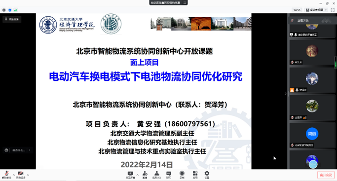 各课题组围绕电动汽车换电模式、多源异构大数据智能处理、城市地下物流组织与优化、物流仓库环境下目标视频跟踪、绿色闭环供应链协调机制、城市物流共同配送、智慧冷链物流选址-路径优化、空地协同任务决策、应急物流资源优化配置、物流网络效率与收益分配策略等专题进行了详细介绍,各位答辩评委针对研究创新点、研究成果、研究展望与未来合作意向,进行了提问与深度交流。
