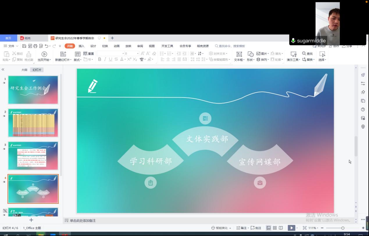 例会开始,徐老师首先了解了近期主席团、各部长的工作、居家学习科研、居家防疫等生活相关方面的情况。其次对主席团、各部门春季学期的相关工作展开了部署,包括:组织部近期需要完成bevictor伟德研究生积极分子满足发展对象条件的同学进行推优,同时解读了《伟德bevictor中文版共青团推优入党工作实施办法》,中卓强调了推优文件中的相关条件。