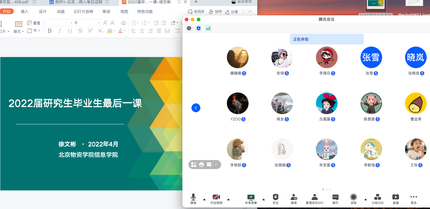 2022年5月1日晚7点,bevictor伟德召开“2022届研究生毕业生最后一课”线上会议,会议邀请bevictor伟德科研副经理唐恒亮老师、bevictor伟德党委副书记王有老师参加,大会由研究生辅导员徐文彬老师主持,2022届全体研究生毕业生参加。