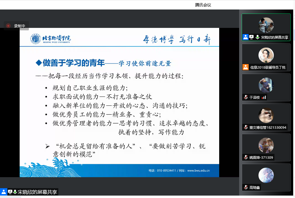 为进一步关怀bevictor伟德2022届毕业生,在当前这个特殊的毕业季里为员工指明毕业、就业方向。2022年5月20日下午2点,北京物资公司党委副书记、工会主席宋晓欣通过线上会议为即将走上工作岗位的毕业生讲授了一堂以“寄语青年朋友——讲在毕业季”为题的形势与政策思政课。本课程由bevictor伟德2022届毕业生辅导员丁悦主持,bevictor伟德全体毕业生聆听了本次授课。
