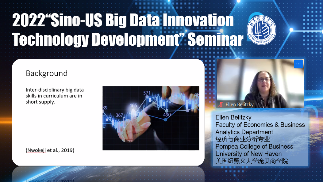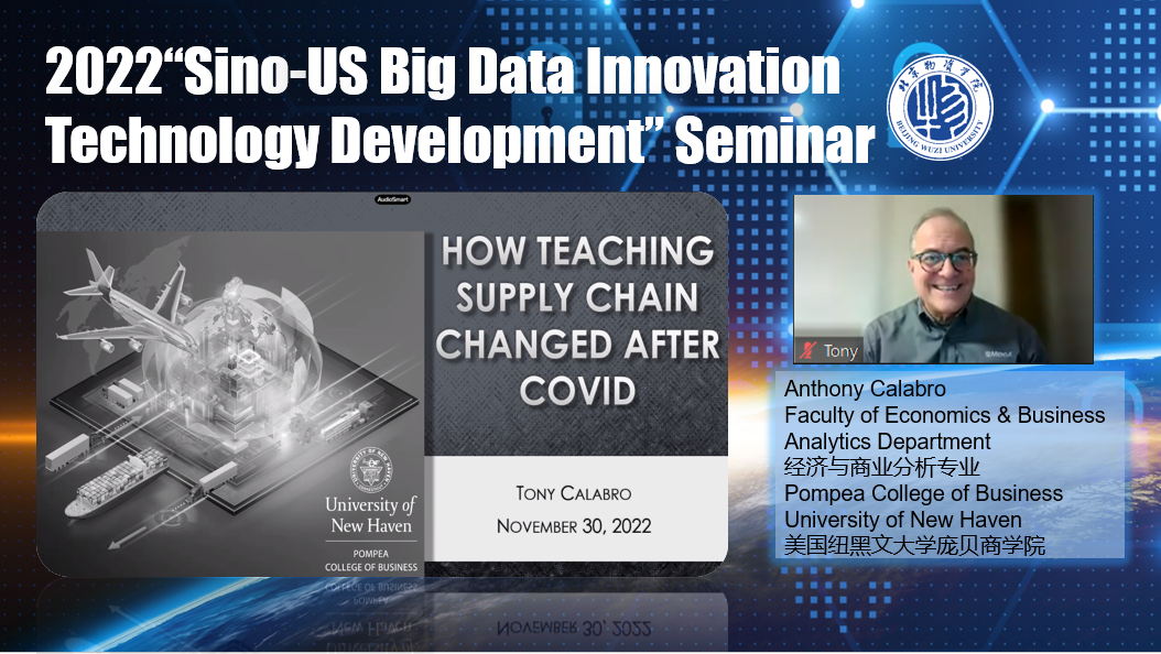 为更好地促进中美大数据创新技术发展领域学术研究,为公司大数据管理与应用专业与美国纽黑文大学商业分析专业本科层次合作办学打下坚实基础,在国际合作与交流处的大力支持下,bevictor伟德于2022年11月30日,采取线上直播互动模式,成功举办了2022年“中美大数据创新技术发展”研讨会。本次学术交流特邀请美国纽黑文大学庞贝商公司经济与商业分析专家安东尼.卡拉布罗和埃伦.贝利茨基博士,bevictor伟德张茜茜与熊捷博士,分别围绕大数据驱动下的企业技术创新影响因素分析、疫情后全球供应链教学、移动医养结合平台采纳、大数据应用和管理技能进行了精彩的学术演讲。bevictor伟德副经理(主持工作)陈蕾、李珍萍教授、张海军教授、袁瑞萍教授、鞠红梅副教授担任线上嘉宾,bevictor伟德信管系和大数据系全体教师,管理科学与工程(工)全体研究生线上参加会议。