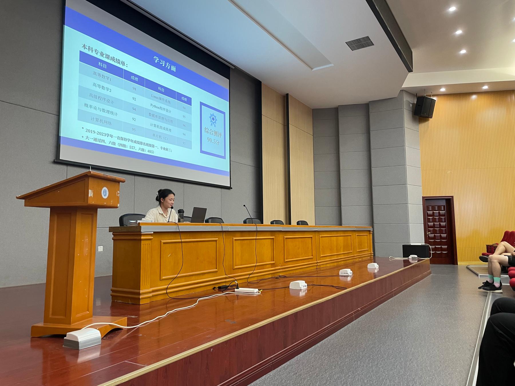郭文昕同学围绕在校期间如何做好专业学习做了经验分享,结合自己在大一期间的课程、校内外考试、绩点情况介绍,向与会新生详细分享了了进入大学后会遇到的学习环境的变化,以及对应的学习方法的调整策略。