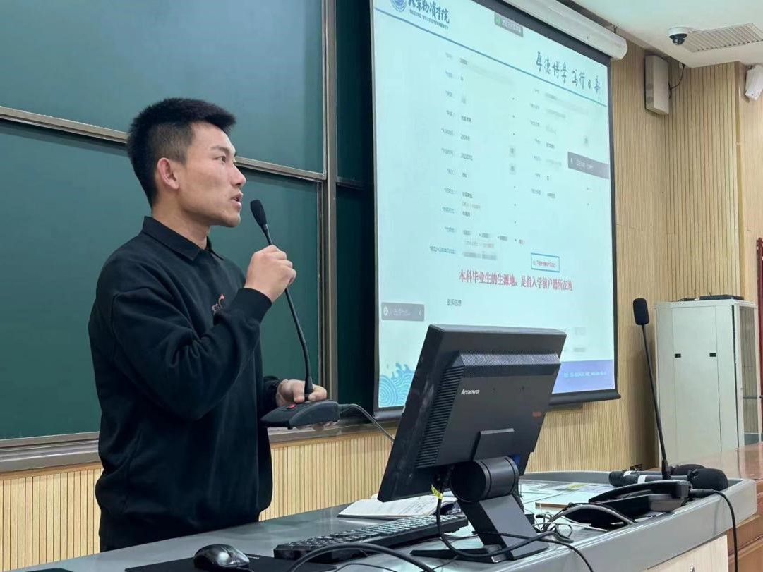 会上,孙会彬老师分别就“就业系统使用”、“年度校招安排”、“就业材料填报及就业流程”、“就业形势分析”等方面事项面向全体毕业生做了细致讲解。他要求全体毕业生要认真对待各项就业材料的填报工作,确保就业材料填报准确及时。他鼓励同学们要树立积极的就业意识,提早做好各项就业准备,认真把握公司和公司提供的就业培训、就业双选会等就业机会,争取在毕业前落实满意的毕业去向。