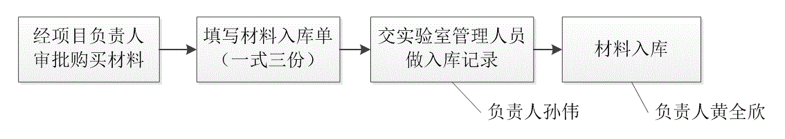 1、材料费支出应履行“材料费支出及入库手续”,流程如图1所示。办理入库手续时需要将所购材料和入库单交予相关实验室管理员。